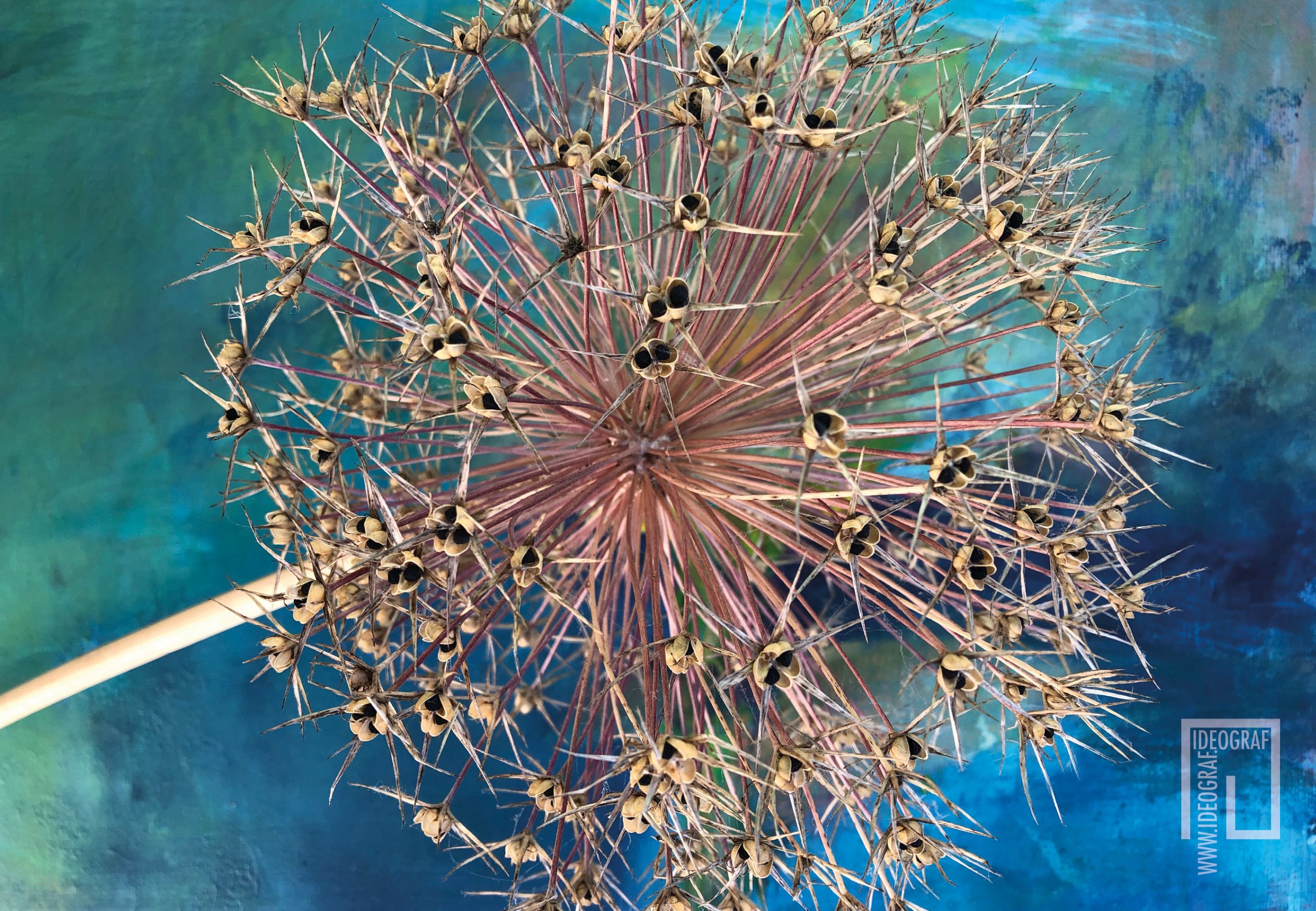 Die Geschichte zu dieser Bildserie beginnt in meinem Wohnzimmer. Meine Nachbarin schenkte mir eine Sonnenblume, die ich vor mein Bild an der Wand stellte. Leider vertrocknete sie durch meine geringe Pflege. Während ich noch darüber lamentierte, entdeckte ich, wie wunderschön diese Vergänglichkeit war und sich mit dem Bild auf fantastische Weise verband. Seitdem sammele ich bei meinen morgendlichen Spaziergängen begeistert Naturfundstücke und kombiniere sie mit meiner Malerei.